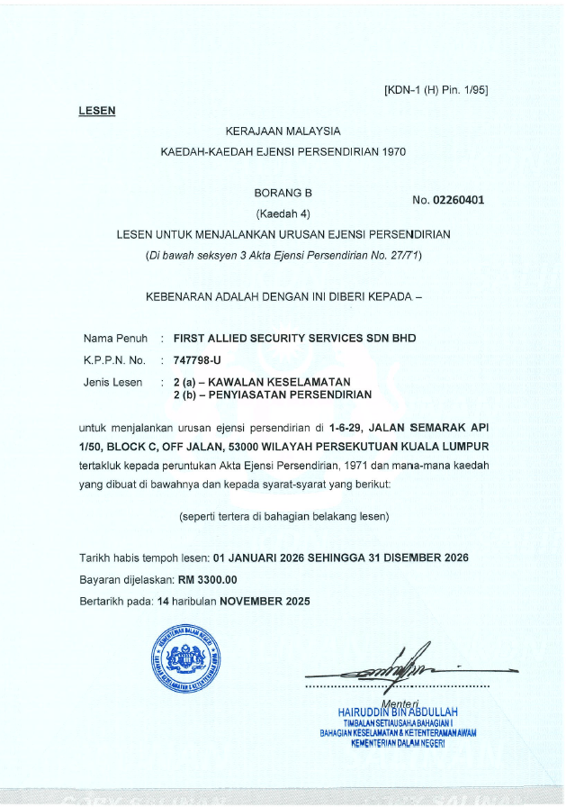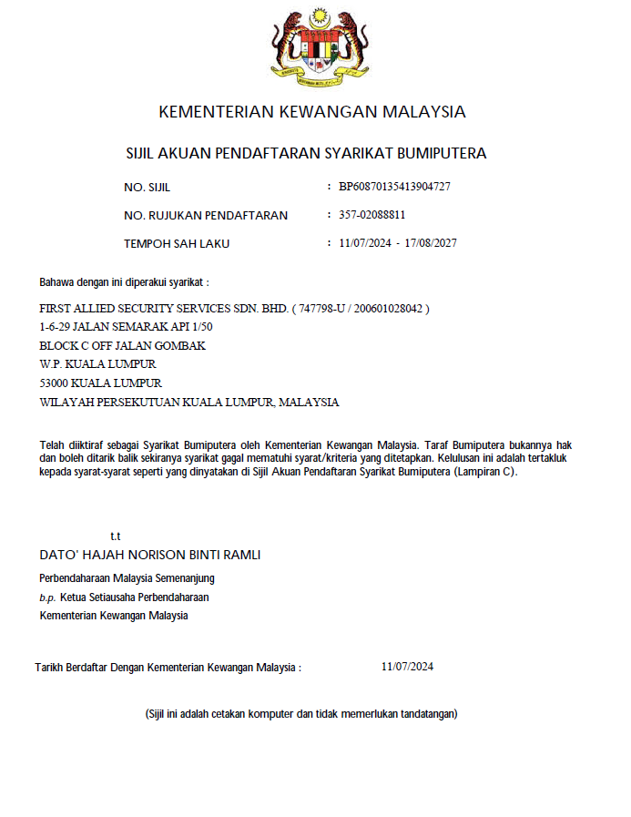 FIRST ALLIED SECURITY SERVICES SDN BHD