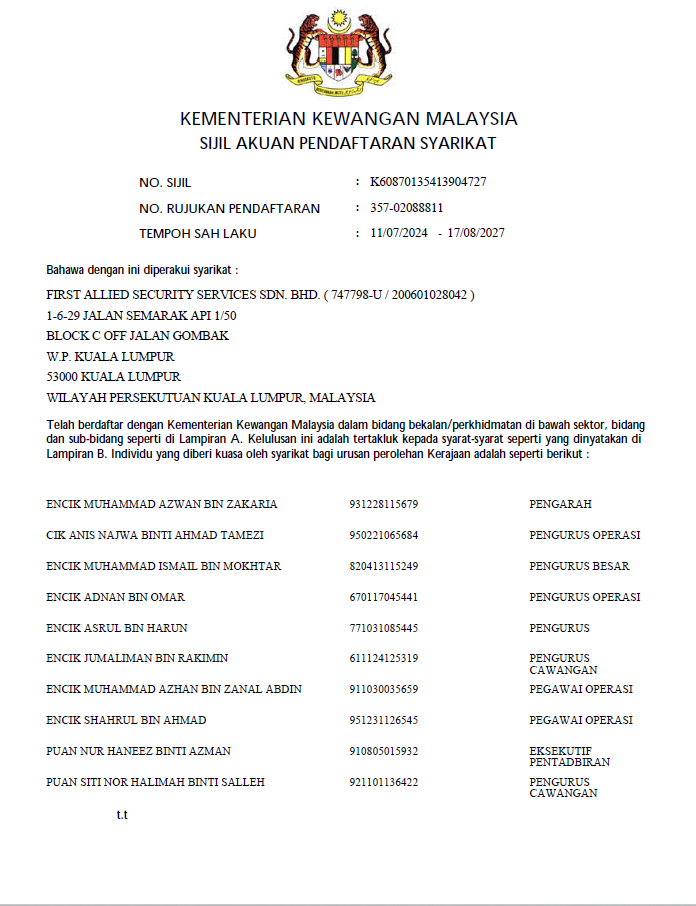 FIRST ALLIED SECURITY SERVICES SDN BHD